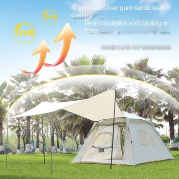 Two-in-One Portable Outdoor Camping Tent Canopy Silver Glue Full Set Oxford Fabric Sunscreen Rainproof Thick Folding Automatic